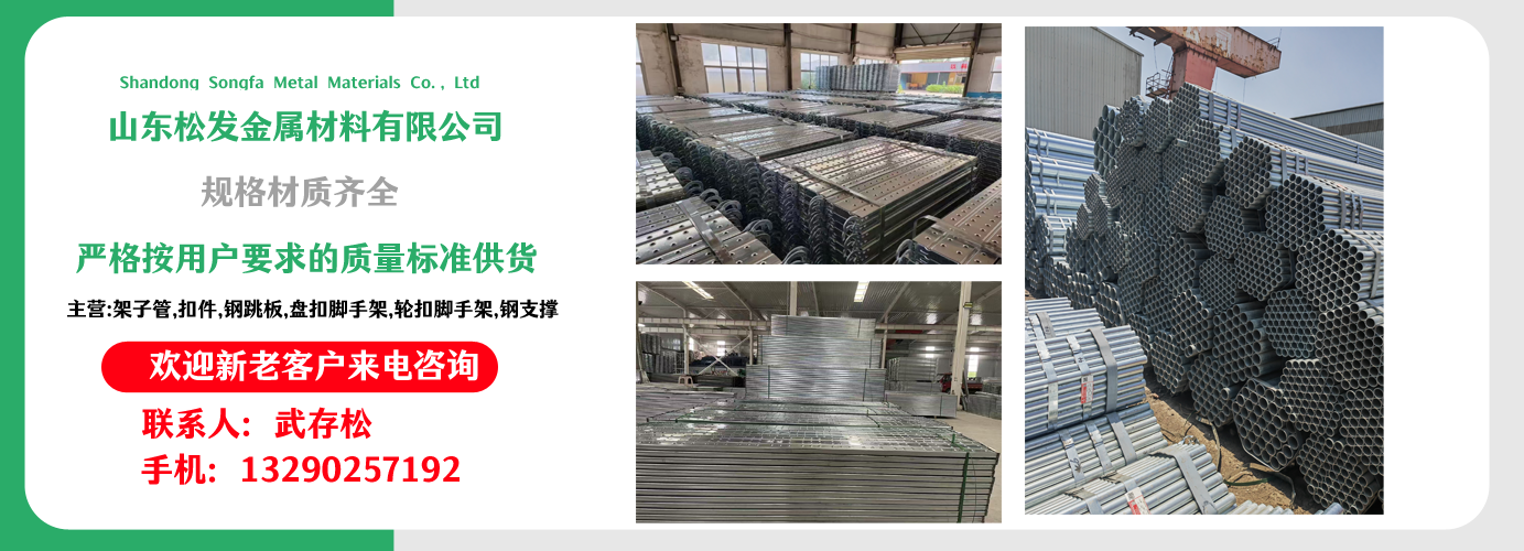 山東松發(fā)金屬材料有限公司主營架子管,扣件,鋼跳板,盤扣腳手架,輪扣腳手架,鋼支撐生產廠家。本廠專業生產銷售。 建筑用架子管、 主要用于房建,橋梁,鐵路,公路,地鐵,水庫,隧道,支撐。 架子管,扣件,鋼跳板,盤扣腳手架,輪扣腳手架,鋼支撐的優(yōu)越性及應用“ ”產品因具有結構簡單合理、設計巧妙、使用方便、安全、快捷、易于運輸、儲存、維護簡單等特點。 公司一貫堅持“質量,用戶至上,優(yōu)質服務,信守合同”的宗旨,憑借著高質量的產品,良好的信譽,優(yōu)質的服務,產品暢銷全球。歡迎廣大客戶來電洽談,共同發(fā)展,共創(chuàng)輝煌! 山東松發(fā)金屬材料有限公司秉承誠信服務、恪守信譽的宗旨,在同等的質量下,保證以最低的價格,最完善的服務,最高的信譽來答謝各界朋友的支持和厚愛,歡迎您的來電、咨詢,我們將竭誠為您服務!...